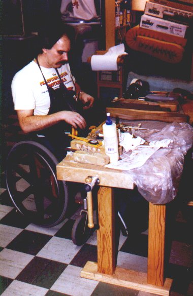Showing Glued Up Wood to Bass Player Friend Sonny Ward